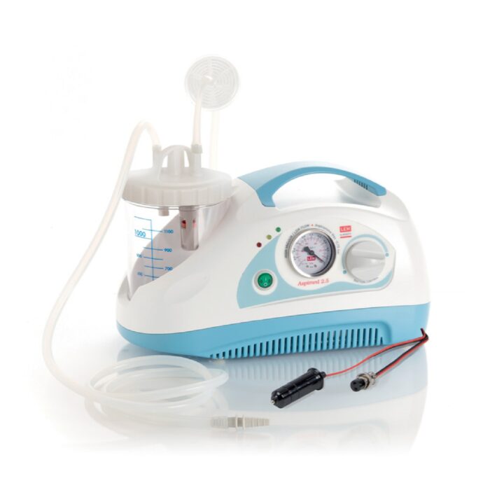 Aspiratore per piccola chirurgia idoneo ad un utilizzo continuo. A doppia alimentazione (230V/50HZ – 12 VDC con batteria ricaricabile), per impieghi di emergenza e per utilizzo su mezzi di soccorso, facilmente trasportabile, leggero e potente. Particolarmente adatto all’aspirazione di liquidi corporei come muco e catarro. Corpo in ABS autoestinguente con elevato isolamento termico ed elettrico in conformità alle vigenti normative di sicurezza europee. L’aspirazione può essere regolata con una manopola posta sul fronte dell’aspiratore e può essere controllata a mezzo del vacuometro di facile lettura. Il vaso in policarbonato da 1 litro è dotato di valvola di troppo pieno ed è sterilizzabile in autoclave.