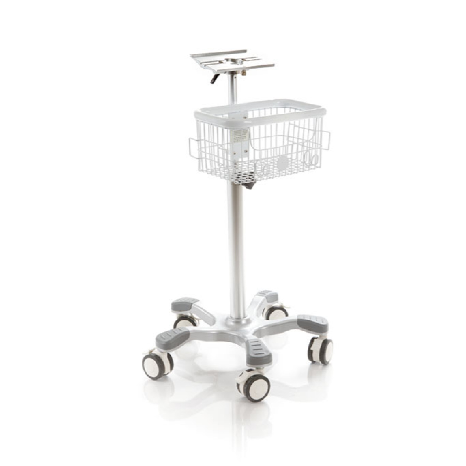 Carrello in alluminio senza asta, portacavi con base di fissaggio. Doppio cestello. Adattabile alla maggior parte degli apparecchi (specificare in fase di ordine per quale modello*).