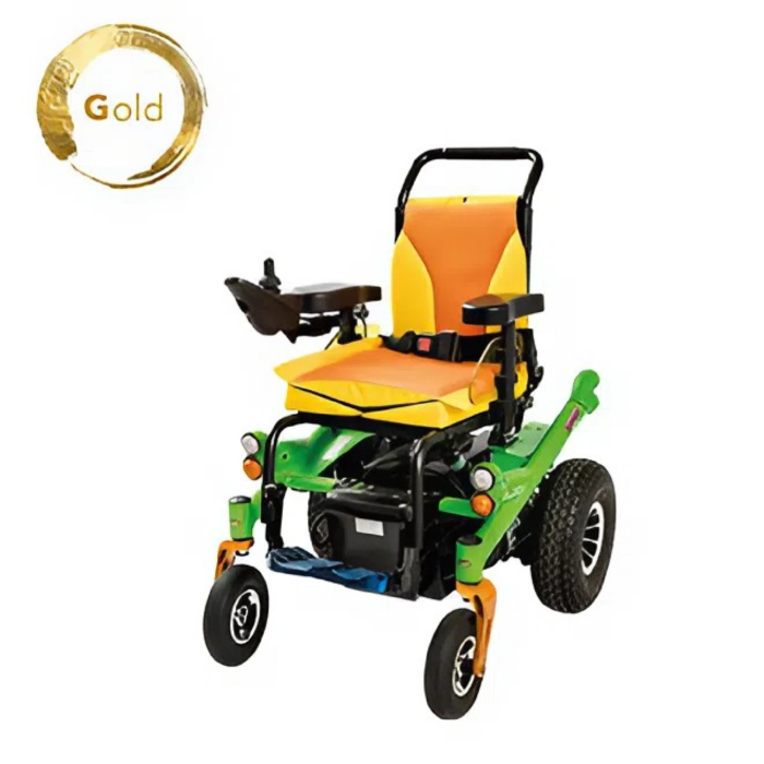 Carrozzina elettronica da bambino compatta ideale per uso sia interno che esterno.