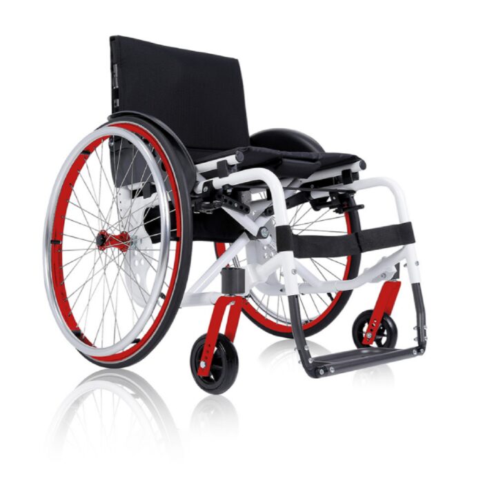 Carrozzina pieghevole superleggera indicata per un uso quotidiano prolungato in condizioni cliniche o ambientali che richiedono facile adattabilità e manovrabilità.