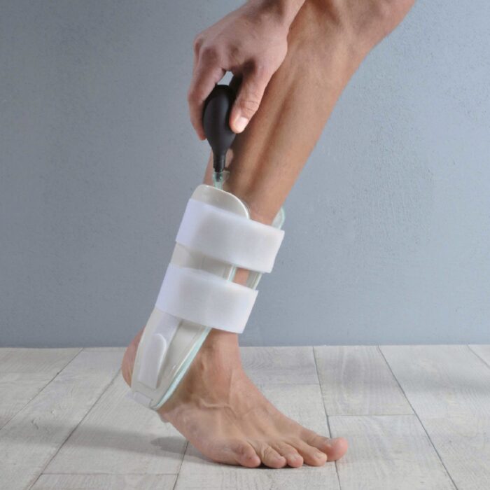 Cavigliera bivalve pneumatica con cuscinetto in materiale plastico gonfiabile con pompetta