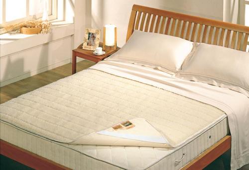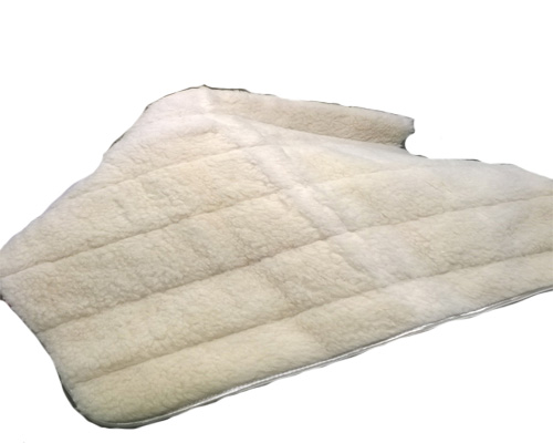 Coprimaterasso con lato di contatto in pura Lana Vergine Merinos (500 gr/mq) e lato di contatto con materasso in tessuto di cotone.