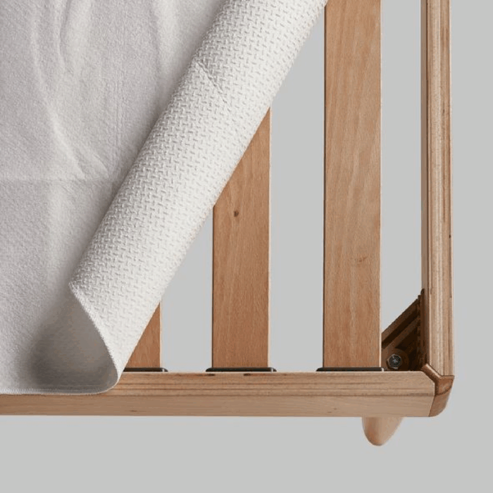 Coprirete antipolvere in feltro dalla parte del materasso e con speciali inserti in gomma sul lato della rete per renderlo stabile e antiscivolo.