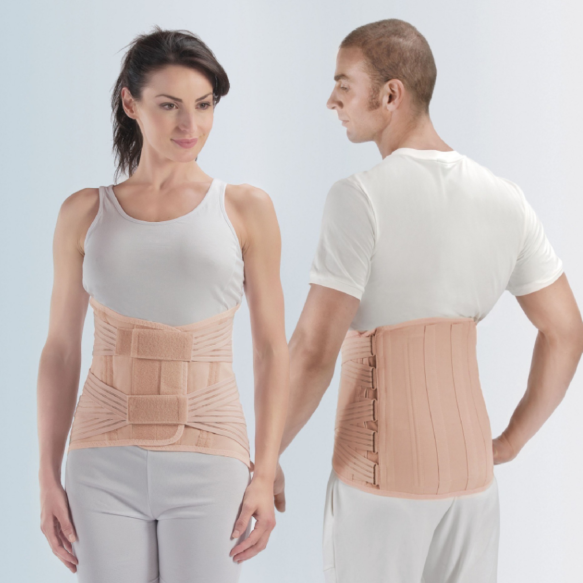 Corsetto lombare in cotone elastico altamente traspirante.