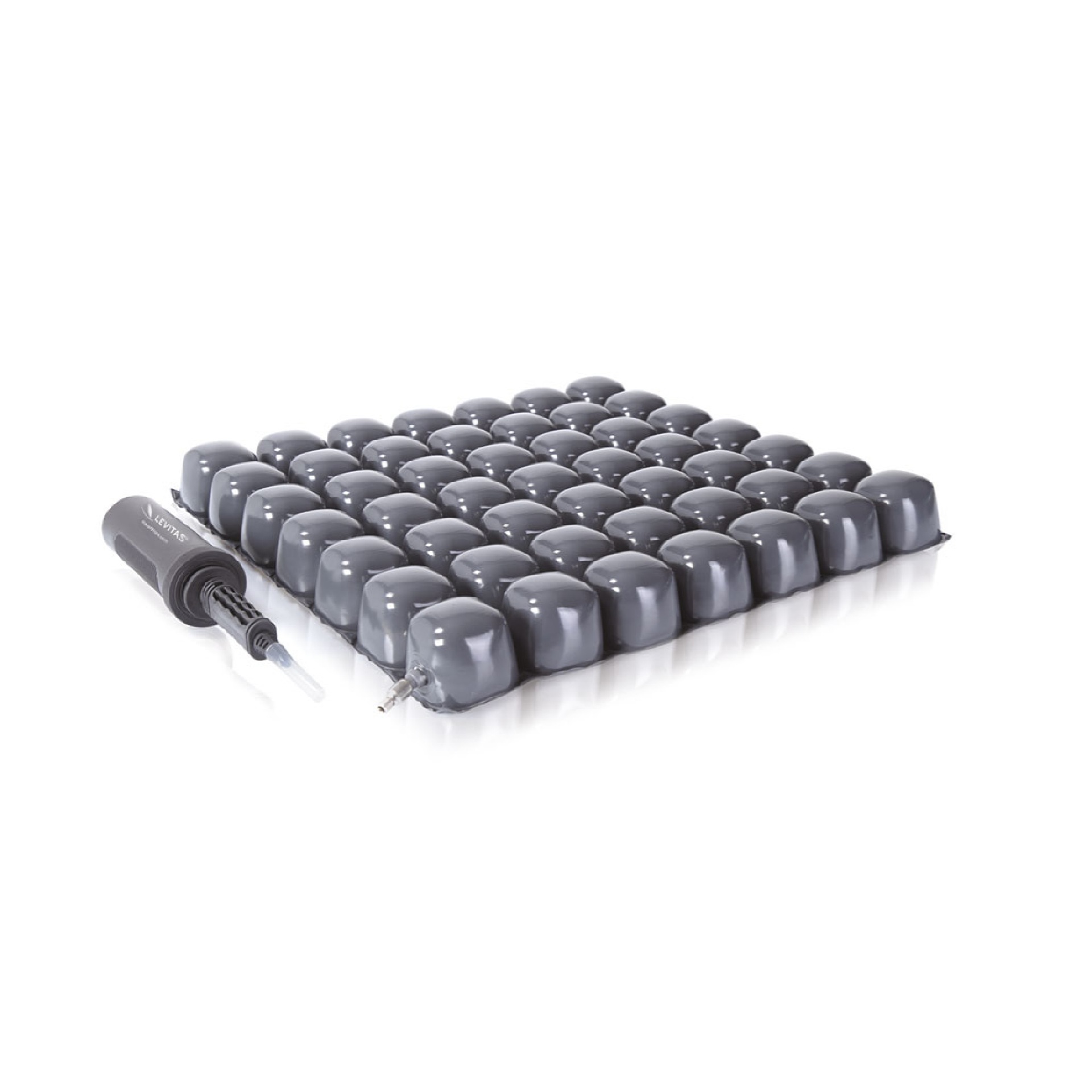 Disponibile in 2 versioni: 1 sezione o 2 sezioni di gonfiaggio in modo da regolare la pressione dell’aria in ogni singola sezione a seconda delle esigenze specifiche di posture asimmetriche.