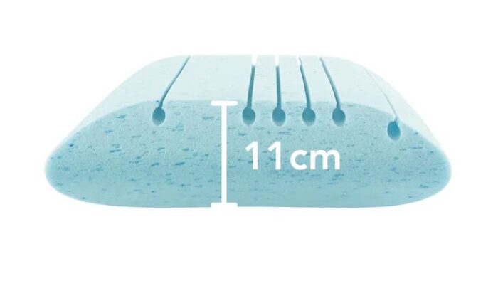 Cuscino in memory fresh avvolgente a lento ritorno, arricchito con microparticelle di gel che lo rendono rinfrescante. Accoglie il capo riducendo al minimo le compressioni che contrastano il flusso sanguigno.