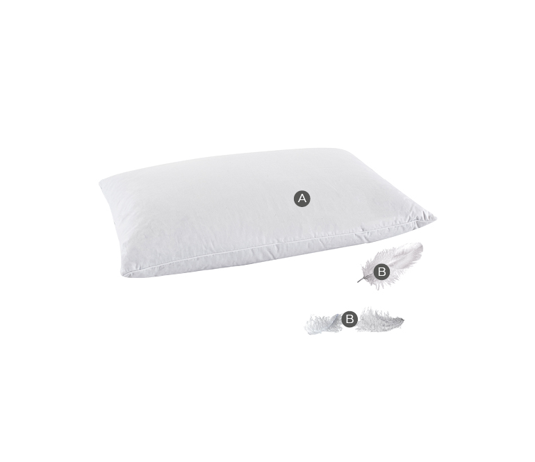 Il cuore del guanciale, più sostenuto, è in 100% piuma, rivestito da uno strato più soffice composto dal 30% in piumino e dal 70% in piuma che offre il massimo della leggerezza e del volume, per un comfort extra soffice.