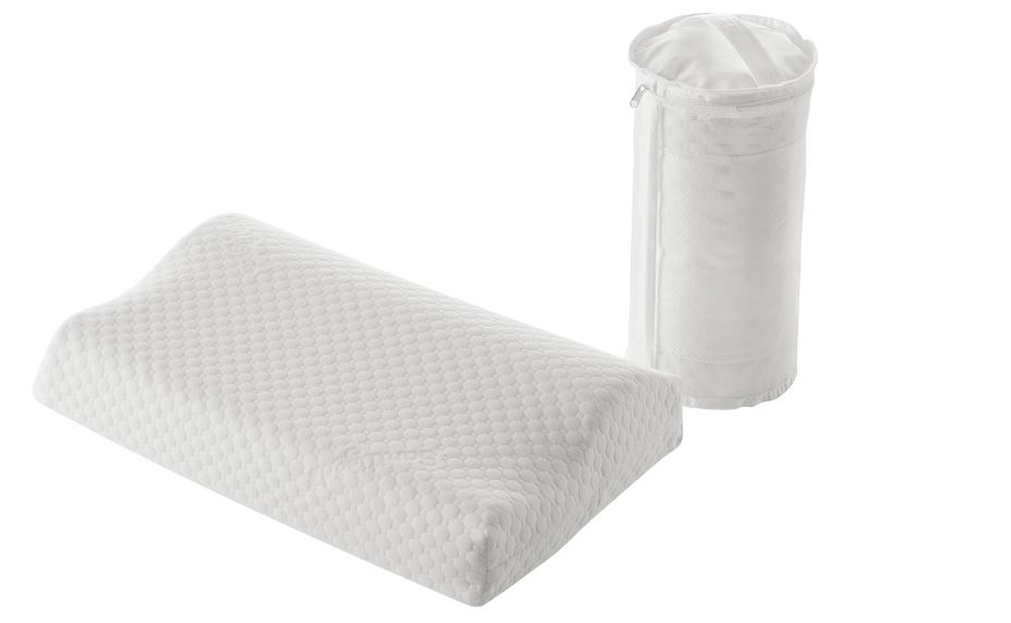 Cuscino in memory soft automodellante a lento ritorno con forma a doppia onda per un ottimo supporto cervicale. Il cuscino è di piccole dimensioni, arrotolato in una pratica confezione da viaggio, per non rinunciare mai, anche in viaggio, alla comodità del proprio cuscino.