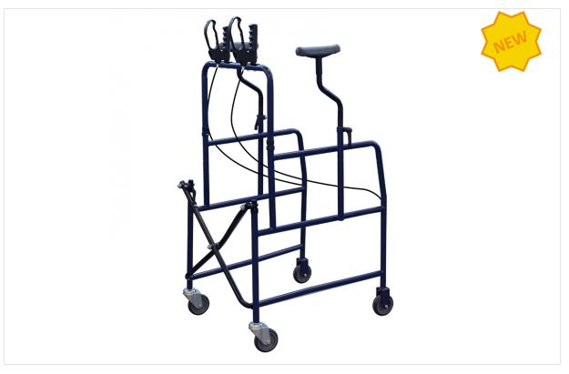 Deambulatore ascellare con struttura pieghevole in acciaio. Dotato in configurazione base: