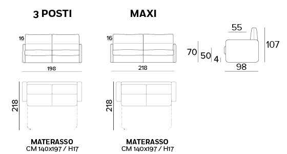 AI materasso è abbinato un Topper staccabile realizzato con 2cm di Memory densità 50 kg/m³ + imbottitura di fibra di