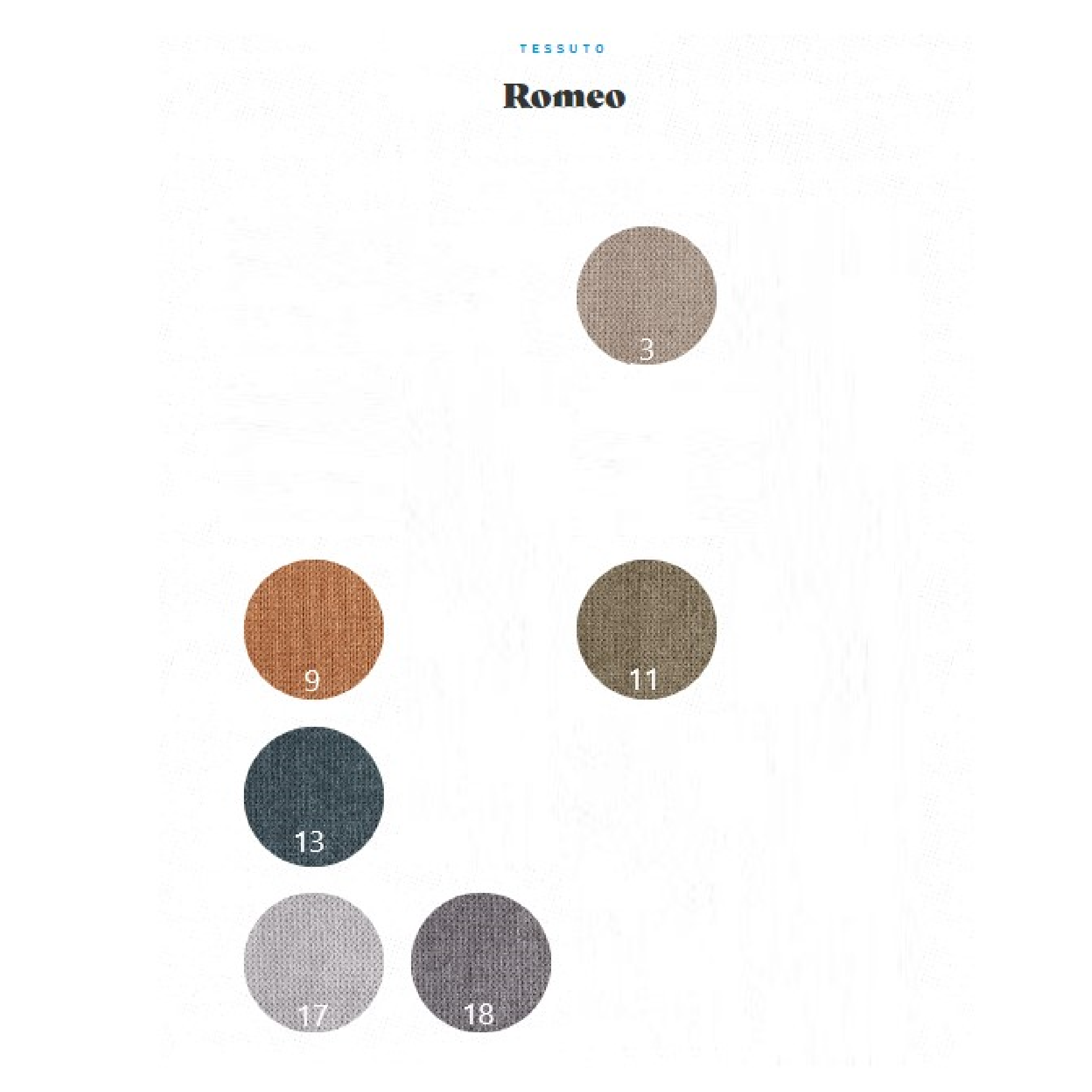 Cuscini per seduta realizzati in poliuretano espanso a densità 30 kg/m³, cuscini per schienale in poliuretano espanso a densità 18 kg/m³.