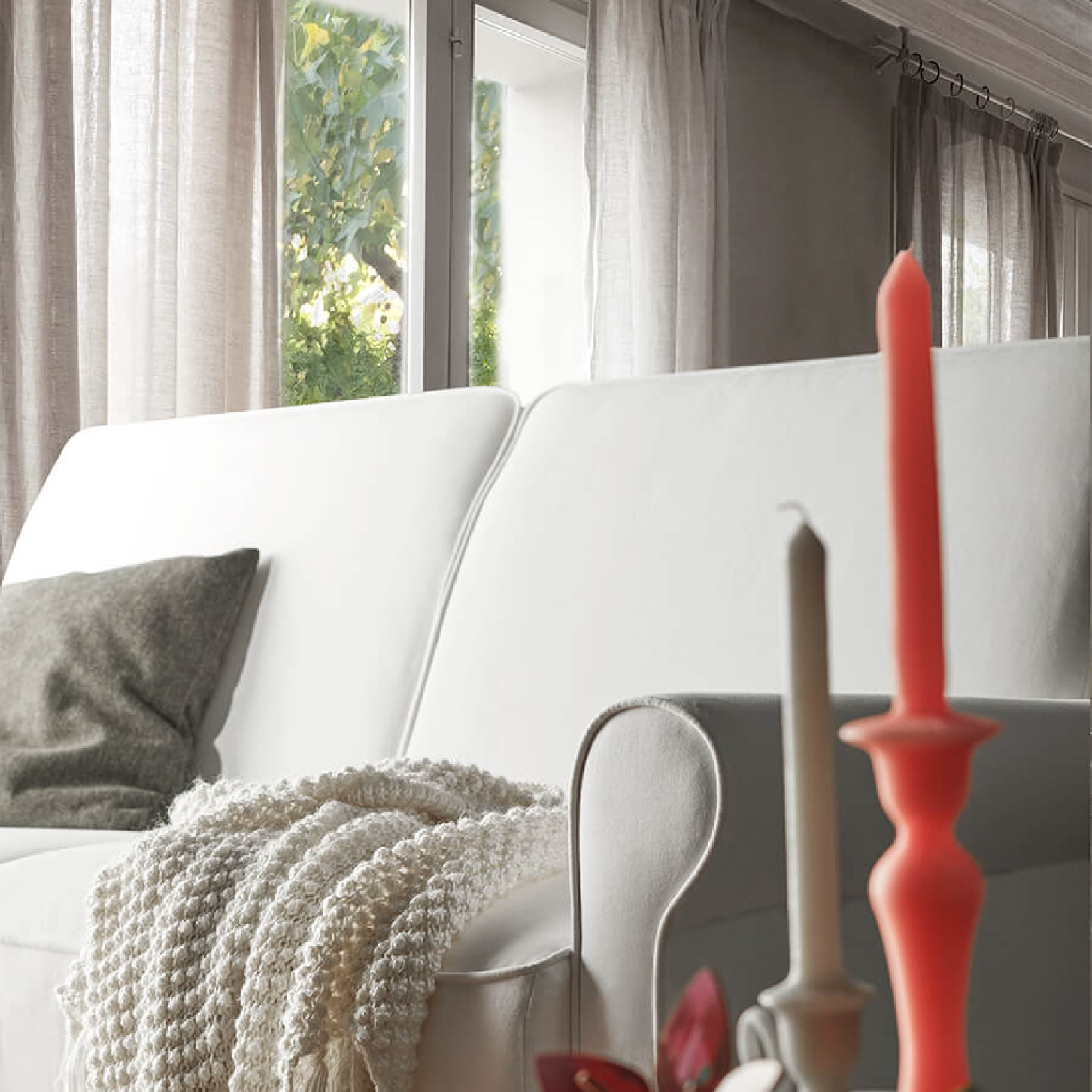 Cuscini per seduta realizzati in poliuretano espanso a densità 27 kg/m³, cuscini per schienale in poliuretano espanso a densità 18 kg/m³.