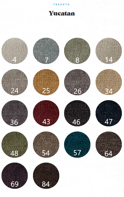 Cuscini per seduta realizzati in poliuretano espanso a densità 27 kg/m³, cuscini per schienale in poliuretano espanso a densità 18 kg/m³.