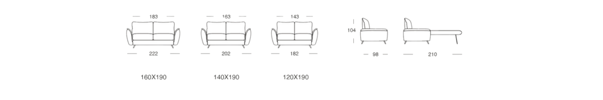 Tre misure per il materasso: 120, 140, e 160 cm.