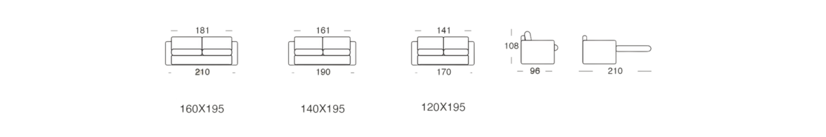 Tre misure per il materasso: 120, 140, e 160 cm.