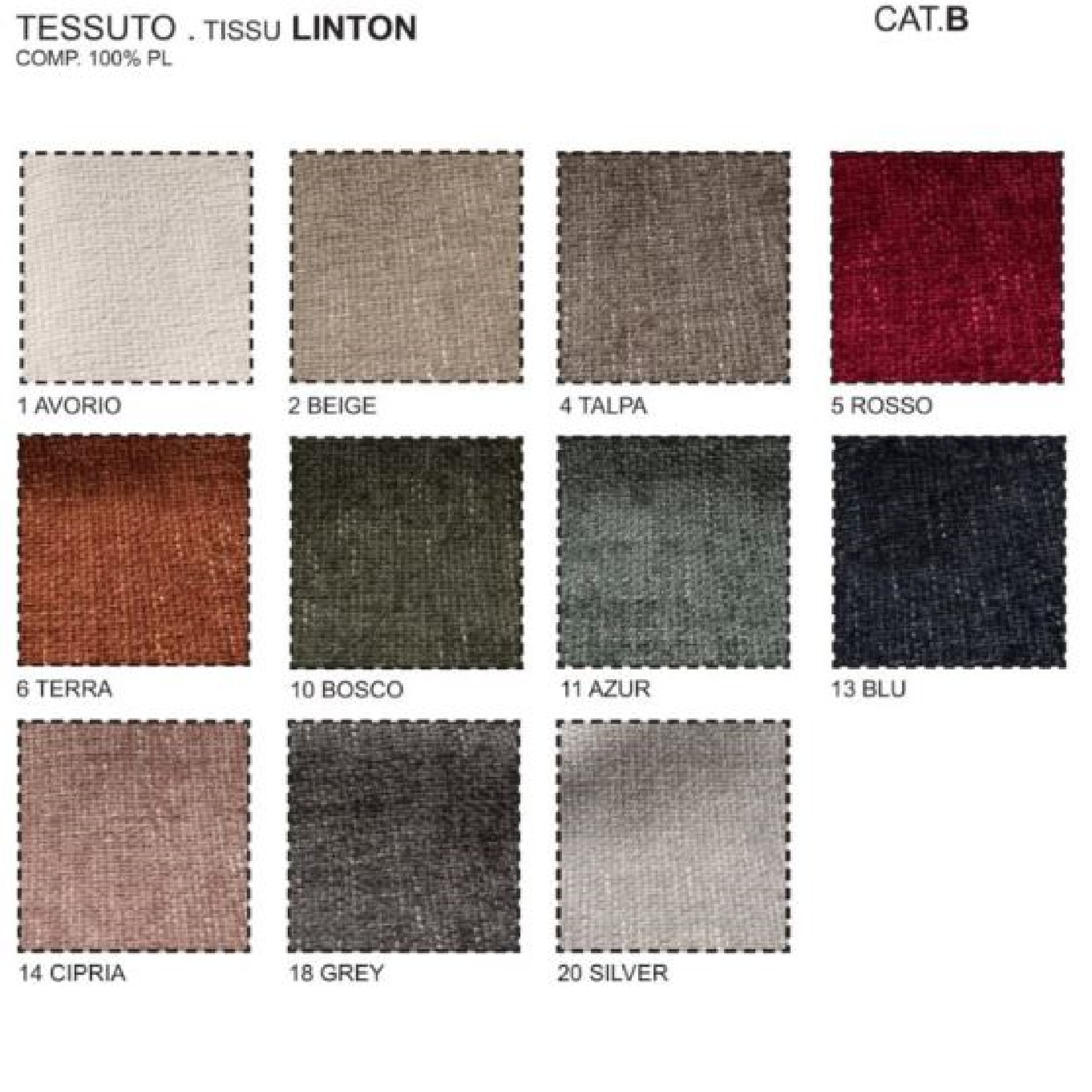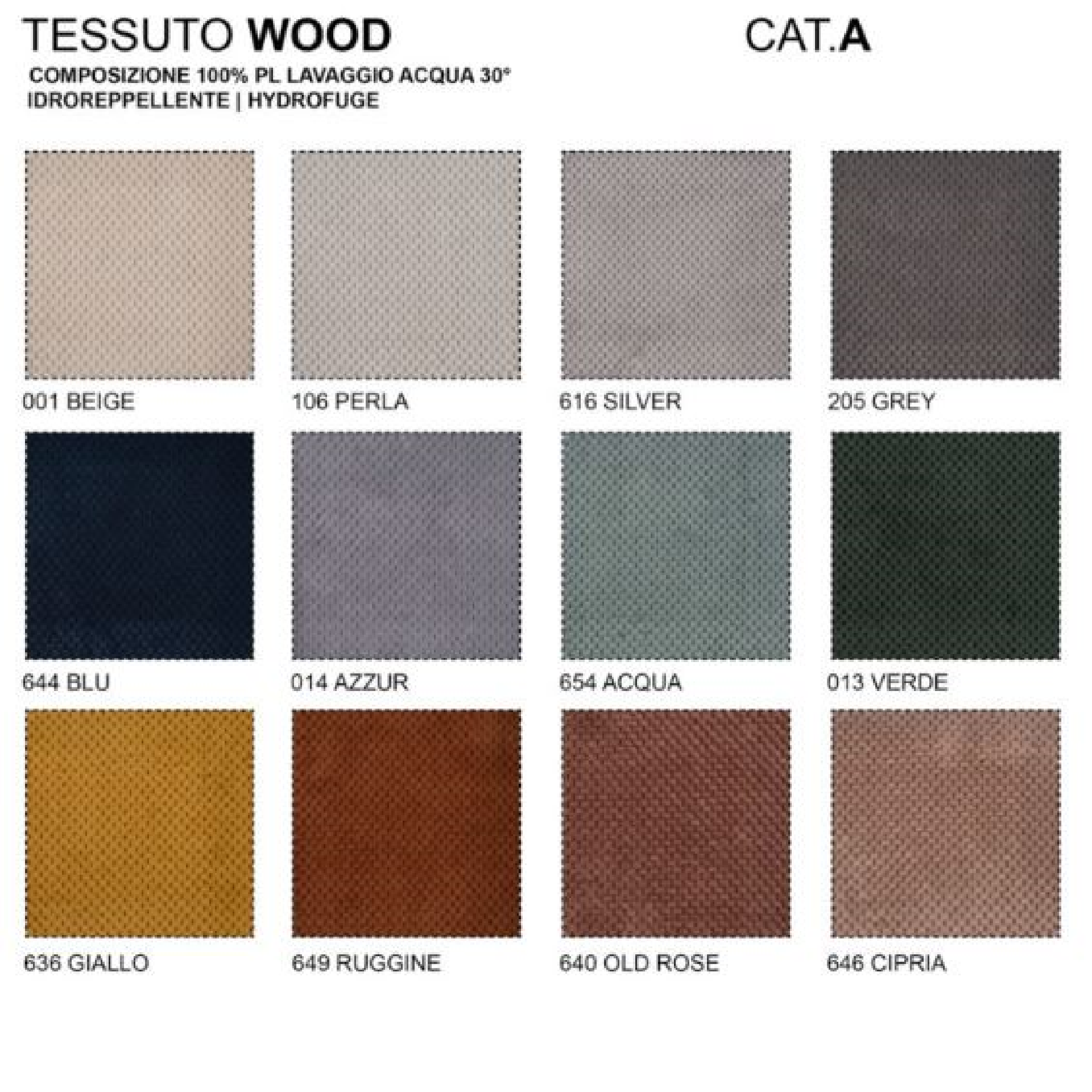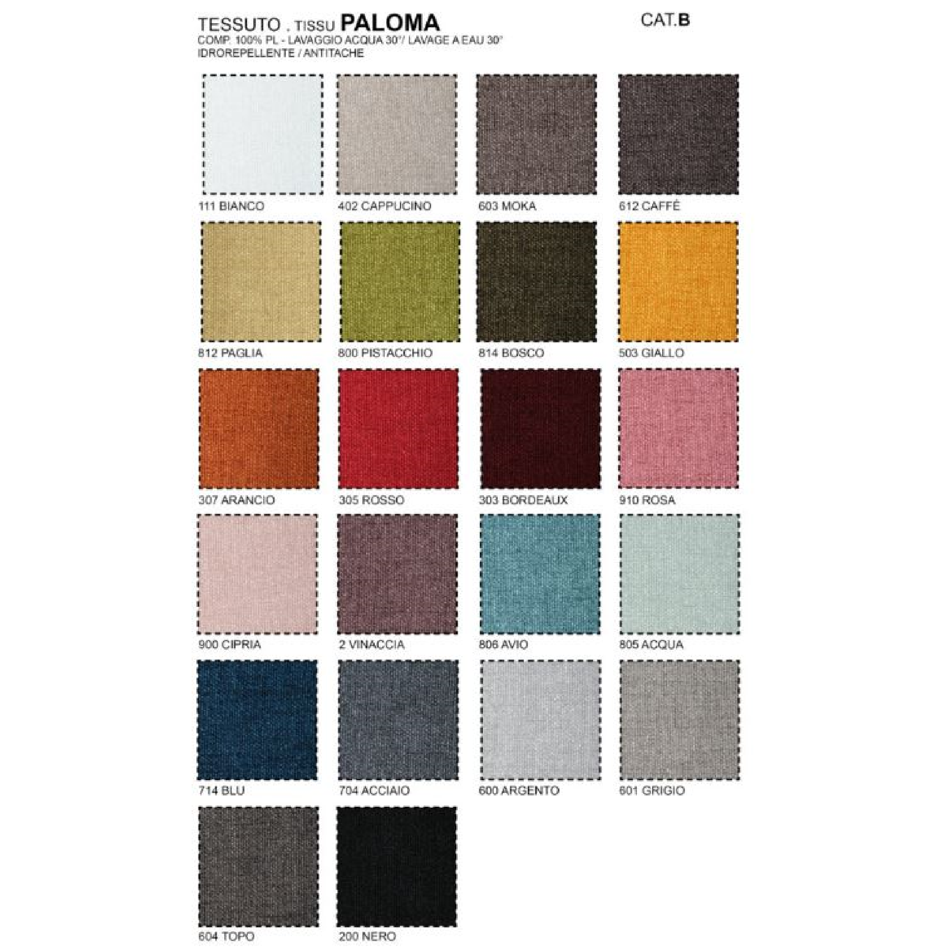Imbottitura: Poliuretano espanso a densità differenziate e falda ovatta acrilica sui cuscini. Seduta densità 30 kgxm³. Spalliera densità 21kgxm³.