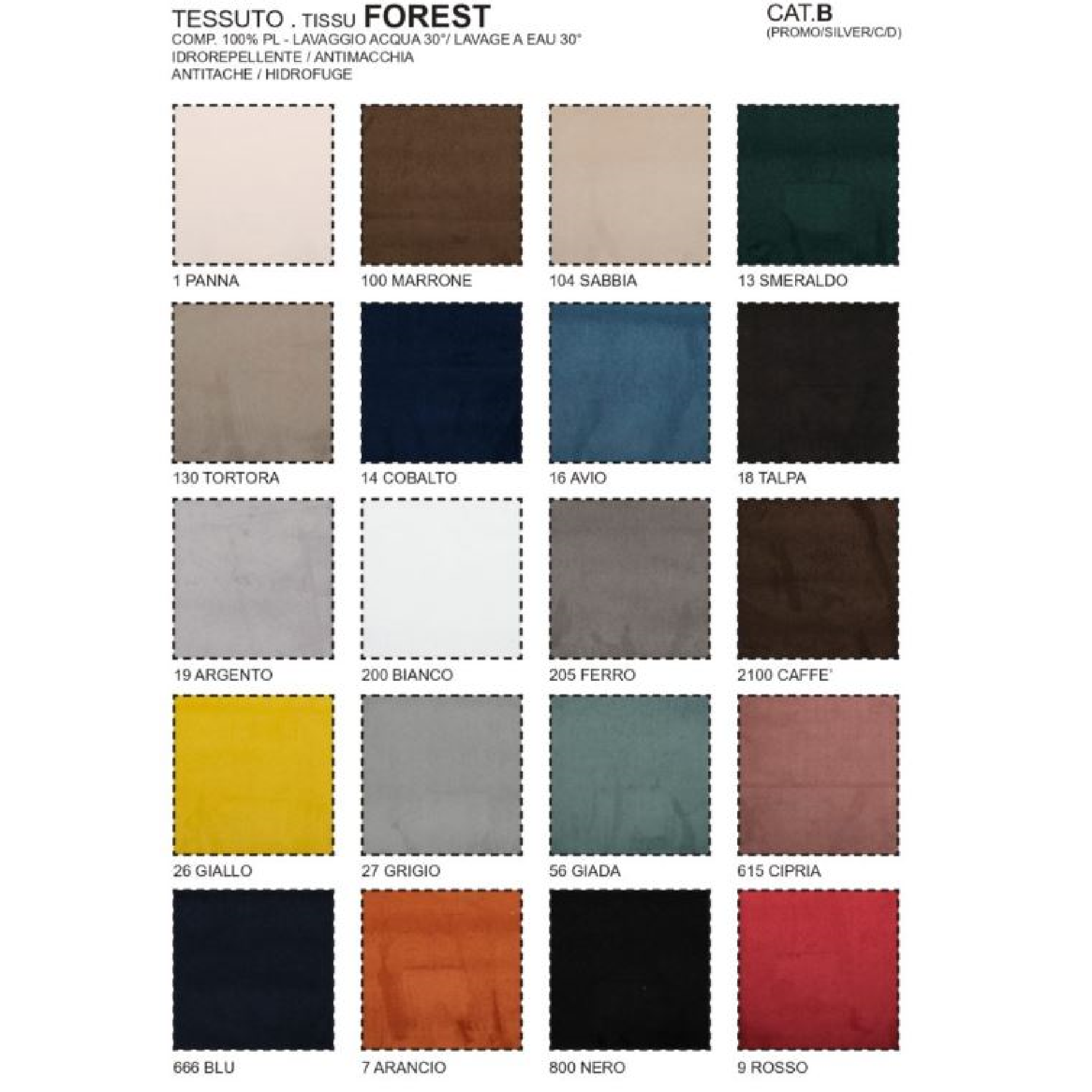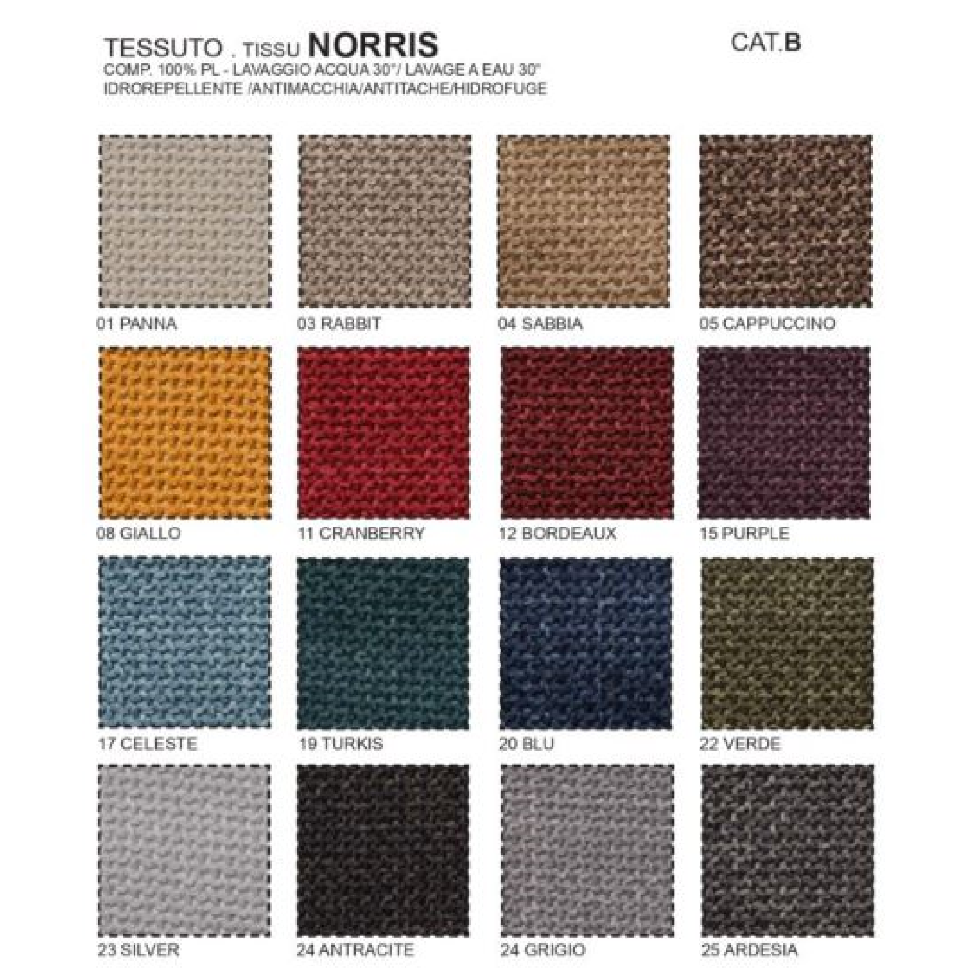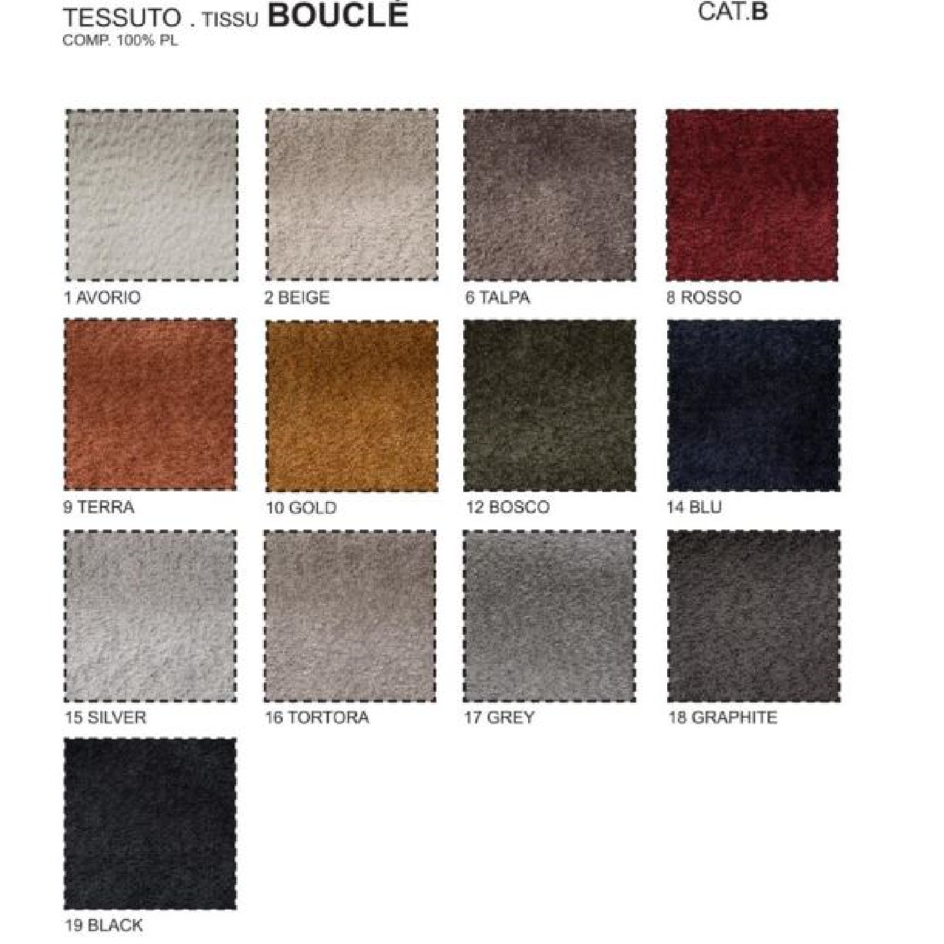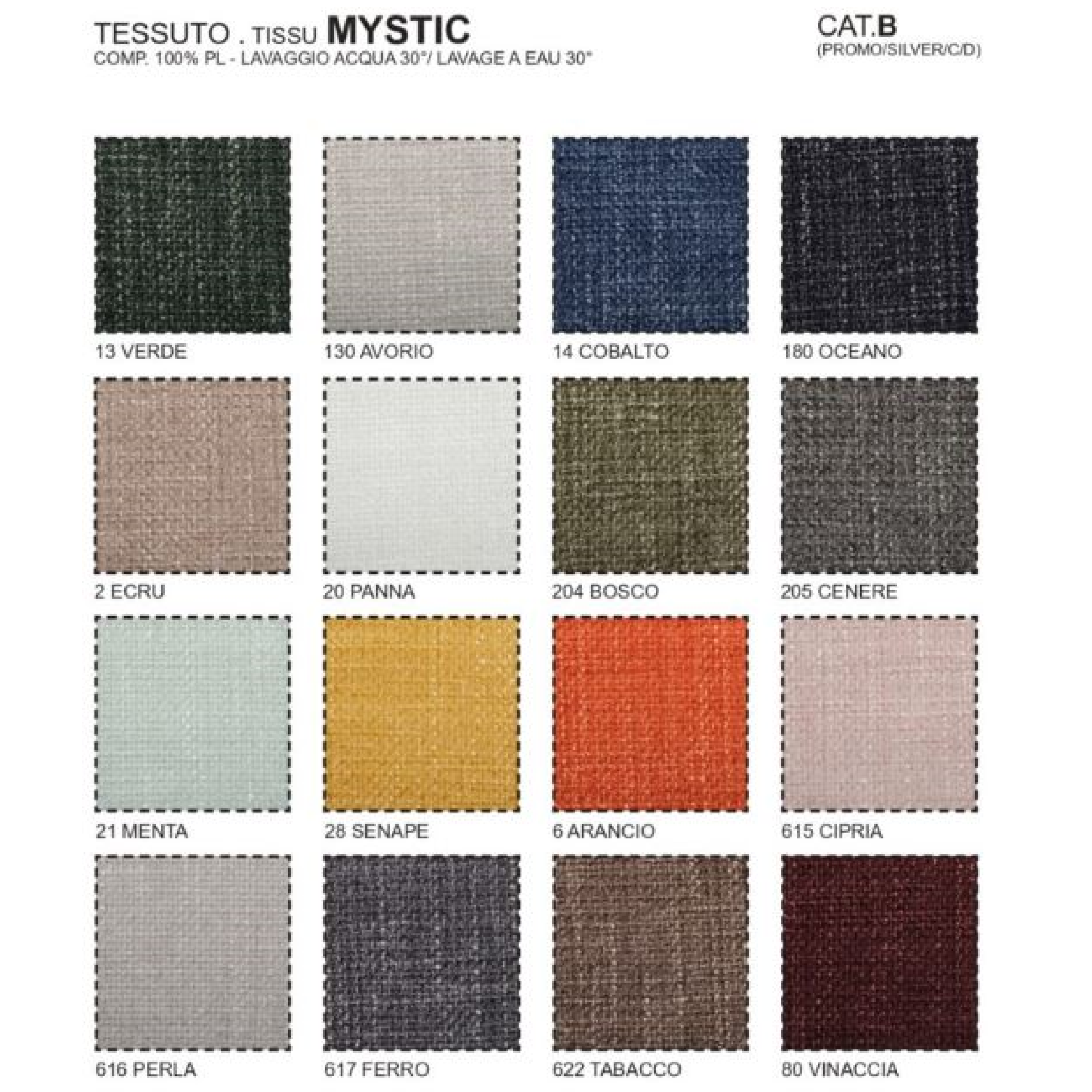 Imbottitura: Poliuretano espanso a densità differenziate e falda ovatta acrilica sui cuscini. Seduta densità 30 kgxm³. Spalliera densità 21kgxm³.
