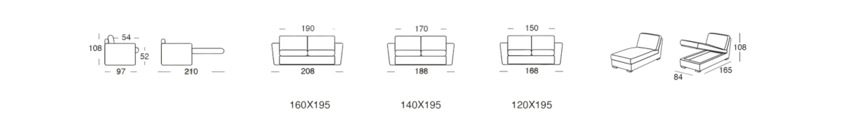 Tre misure per il materasso: 120, 140, e 160 cm.