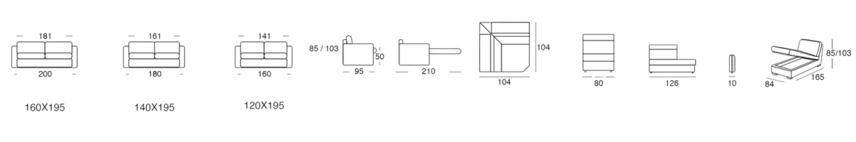 Tre misure per il materasso: 120, 140, e 160 cm.