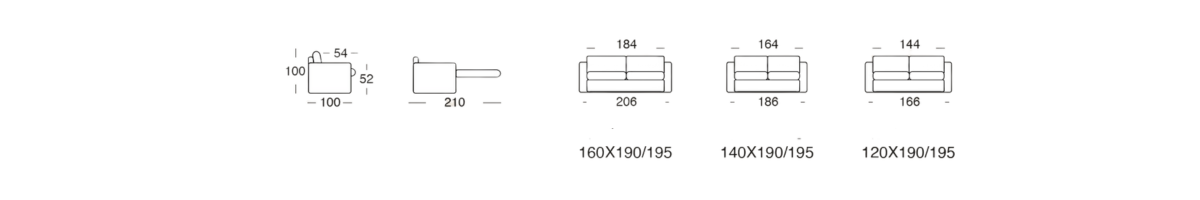 Tre misure per il materasso: 120, 140, e 160 cm.