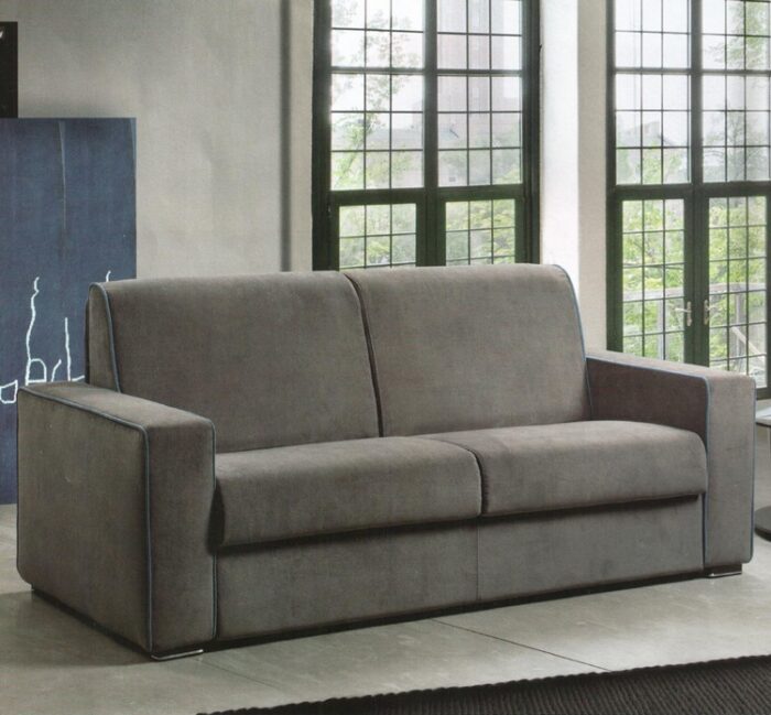 Misure di riferimento: Larghezza 200 cm (braccioli 19 cm, schienale 161 cm), Profondità 96 cm e 201 cm con meccanismo letto aperto, Altezza Schienale 90 cm. Materasso: 140*195 H 17 cm.