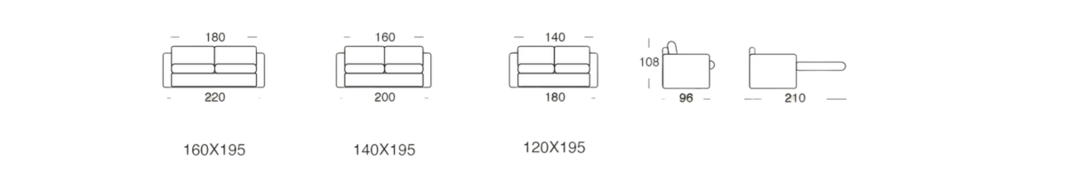 Tre misure per il materasso: 120, 140, e 160 cm.