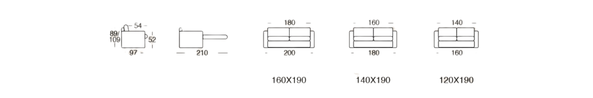 Tre misure per il materasso: 120, 140, e 160 cm.