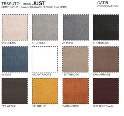 Rivestimento: tessuto (completamente sfoderabile), ecopelle (parzialmente sfoderabile).