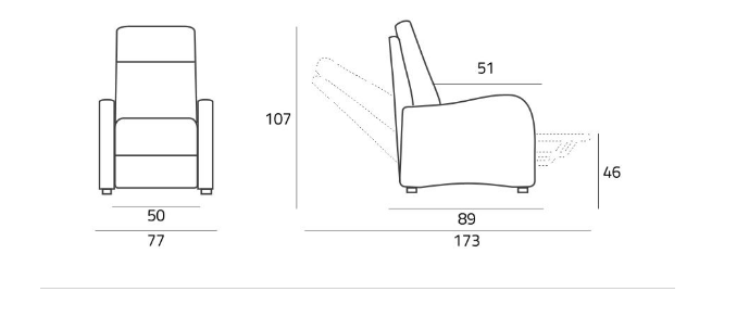 Dimensioni: Profondità 90cm, Profondità (da sdraiata) 147cm, Altezza 102cm, Profindità seduta 57cm, Altezza seduta da terra 46cm.