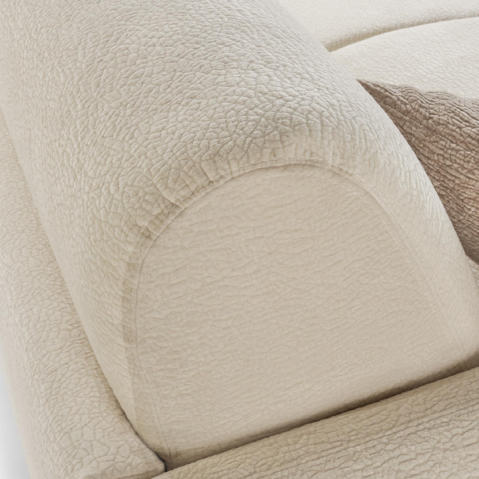 Il tessuto Perimetrale è in poliestere ad altamente traspirante al ma è abbinato un Topper staccabile realizzato con 2 cm di Memory densità 50 kg/m³ + imbottitura di fibra di poliestere da 650 gr per avere un effetto Siffuce, il tutto rivestito da tessuto 100% poliestere e lavabile a Secco.