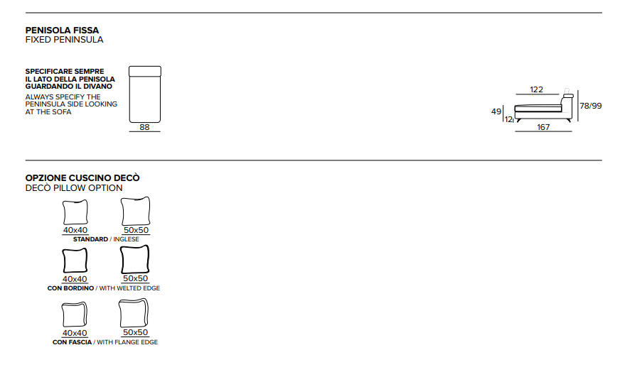 - Divano 2 posti: Larghezza 168 cm, Altezza 78/99 cm, Profondità 97 cm. Altezza Seduta 49 cm.
