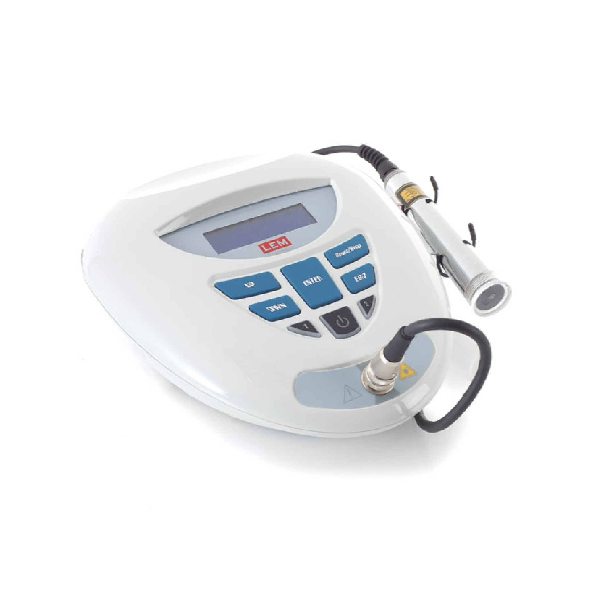 Unità di controllo per emettitori diodici di luce monocromatica laser. L’apparecchio prevede il funzionamento con selezione dei parametri o con utilizzo di programmi preimpostati. Il dispositivo ha un sistema (attivabile) di controllo dell’irradiazione laser in caso di mancato contatto con il paziente.