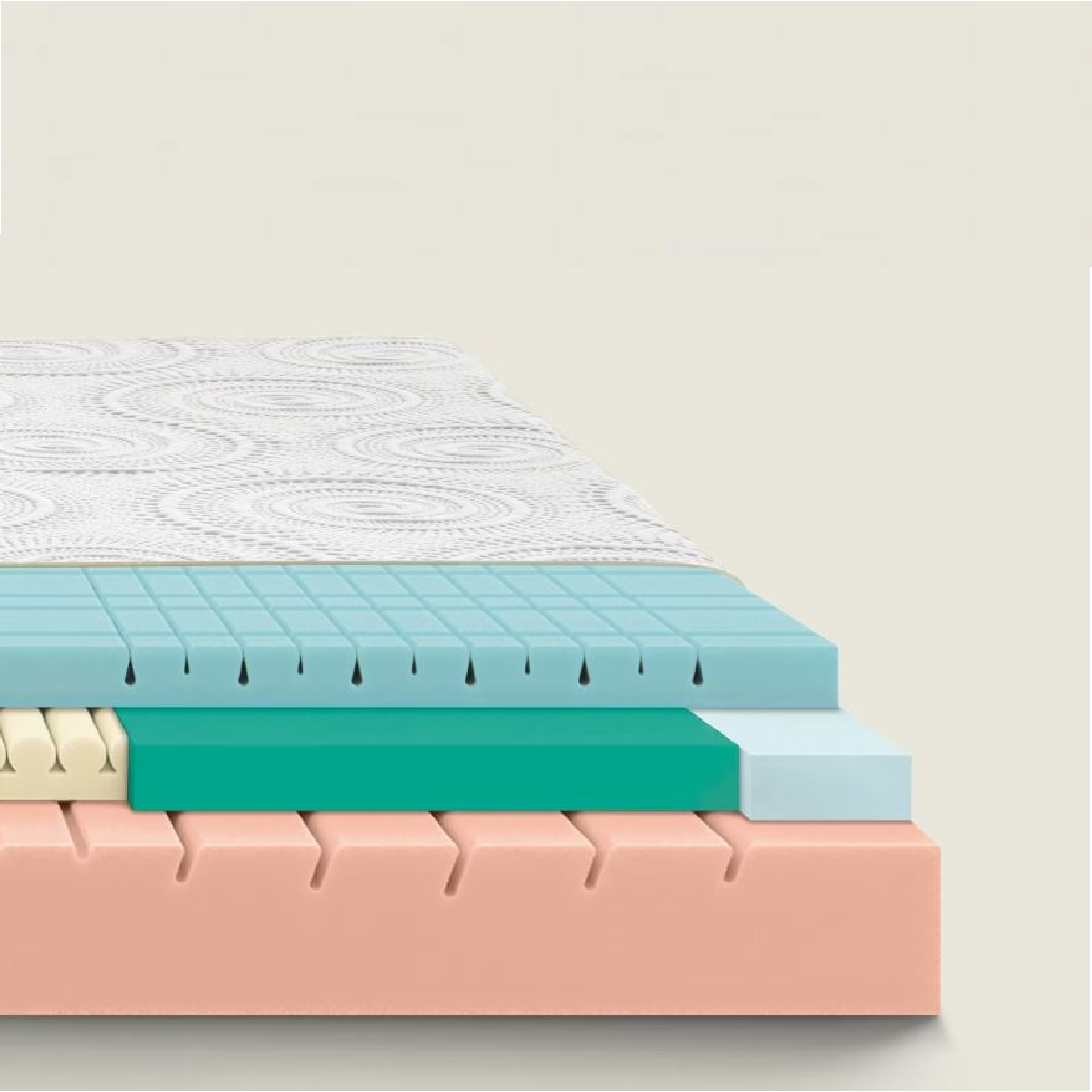 Lo studio delle stratificazioni, insieme alle particolari sagomature di ogni elemento, completano il disegno interno di questo materasso unico.