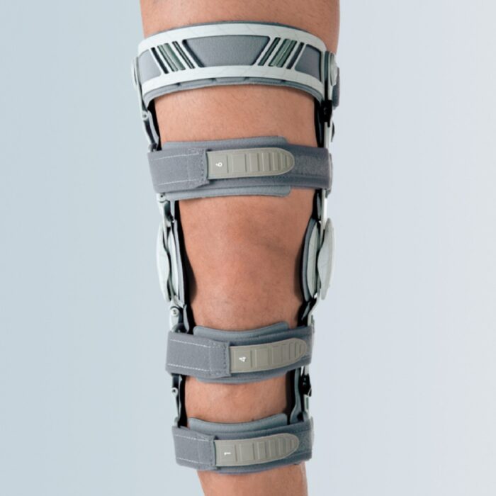 Ginocchiera per osteo-artrosi rigida in alluminio modellabile con sistema di personalizzazione.