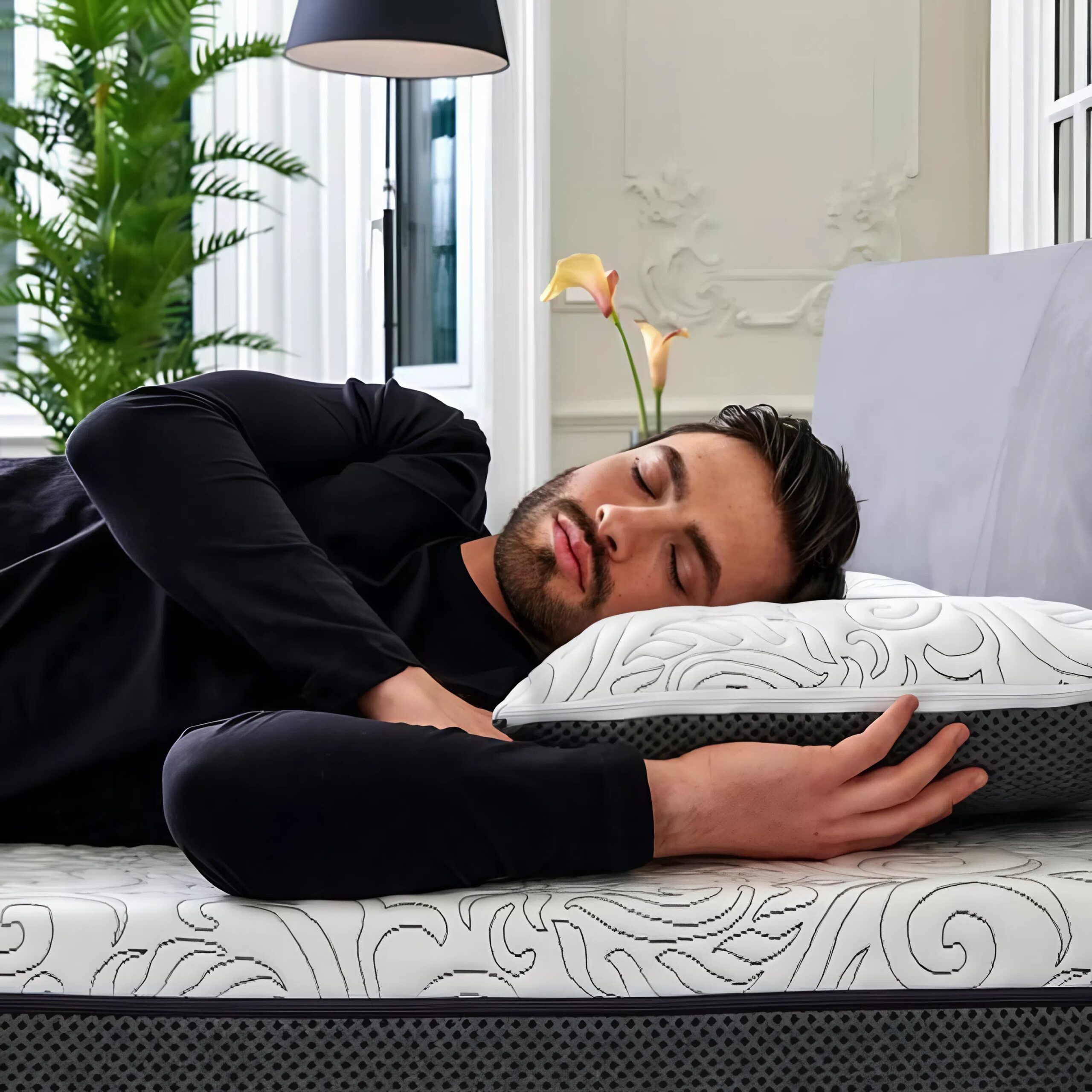 Il guanciale è molto importante perchè sostiene la parte più delicata della colonna vertebrale: la zona cervicale. Ad esempio dormire su un supporto troppo alto o troppo basso può provocare al risveglio numerosi problemi. Un guanciale corretto contribuisce a risolvere un mal di testa molto comune: la cefalea di tipo muscolotensivo. Sulla qualità del sonno influisce anche la traspirabilità del guanciale che deve assicurare il costante ricambio dell’aria e la dispersione dell’umidità. Nella scelta del guanciale bisogna considerare alcuni fattori: struttura corporea, posizione che si assume durante il sonno, altezza del guanciale e rigidità del materasso. Il guanciale deve mantenere la fisiologica conformazione della colonna vertebrale ed evitare un eccessivo affossamento della testa e del collo. Un guanciale troppo alto crea tensione nei muscoli del collo ed un peso eccessivo sulle vertebre dorsali, con un guanciale eccessivamente sottile la testa ricade all’indietro e si comprimono le vertebre cervicali. Dal design inconfondibile, il guanciale Re:Style è realizzato con Myform Air per garantire massima traspirabilità durante il sonno. Il tessuto Re:Style lo rende un prodotto ad alte prestazioni, poichè composto da viscosa e microfibra di poliestere nella parte superiore e da poliestere ed elastan nella parte inferiore; è morbido al tatto, elastico e resistente ai lavaggi. Viene sottoposto a trattamento U-Safe, resistente ai lavaggi, per garantire igiene contro batteri e acari.