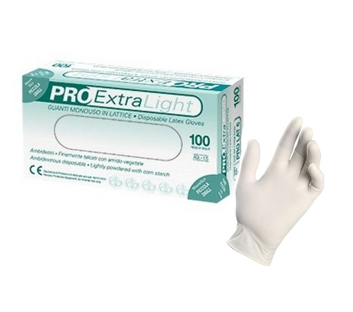 Guanti monouso in puro lattice di gomma naturale, non sterili, sensibilissimo. Superficie liscia. Disponibile finemente talcato con amido di origine vegetale.