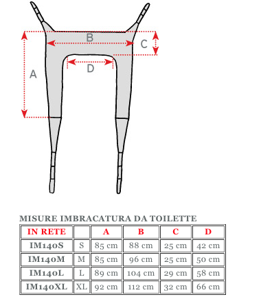 L’imbracatura da Toilette, viene utilizzata per il sollevamento, trasferimento e operazioni igeniche per la toilette. E’ realizzata con tessuto a rete denominato Strongtex, 100% poliestere, affidabile in ogni situazione anche a contatto con l’acqua, antistrappo e altamente traspirante.