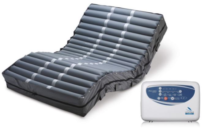 È composto di un materasso alto 25.4 cm a 20 elementi intercambiabili in Nylon/TPU impermeabili e traspiranti e da un compressore con regolazione di pressione. L’altezza degli elementi permette di utilizzare il materasso del PROCARE BARIATRICO senza l’utilizzo di un materasso aggiuntivo. I primi elementi del materasso sono a funzionamento statico per la testa; gli ultimi 5 elementi possono essere staccati in modo da poter mantenere i talloni sospesi in aria, eliminando completamente la pressione esercitata sui talloni, la restante parte del materasso è a funzionamento alternato a 2 vie.