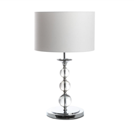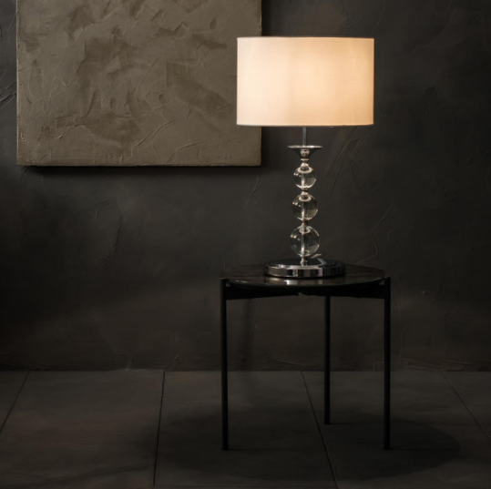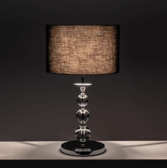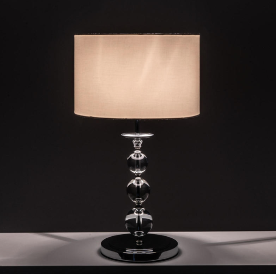 Lampada da tavolo con paralume in tessuto. Struttura in plexiglas e base in metallo, pedisposto per 1 lampadine E27 max 40W (non in dotazione).