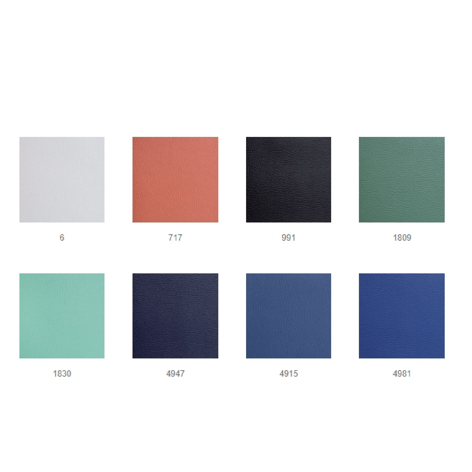 Rivestimento in similpelle lavabile ed autoestinguente classe 1M, verniciatura con prodotti all’acqua.