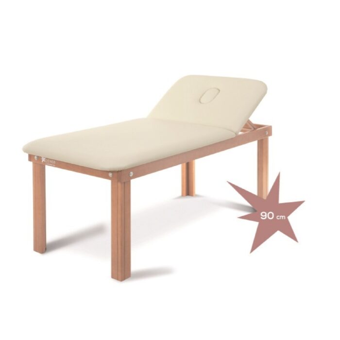 Lettino largo 90 cm con schienale regolabile manualmente da 0° a 45°.