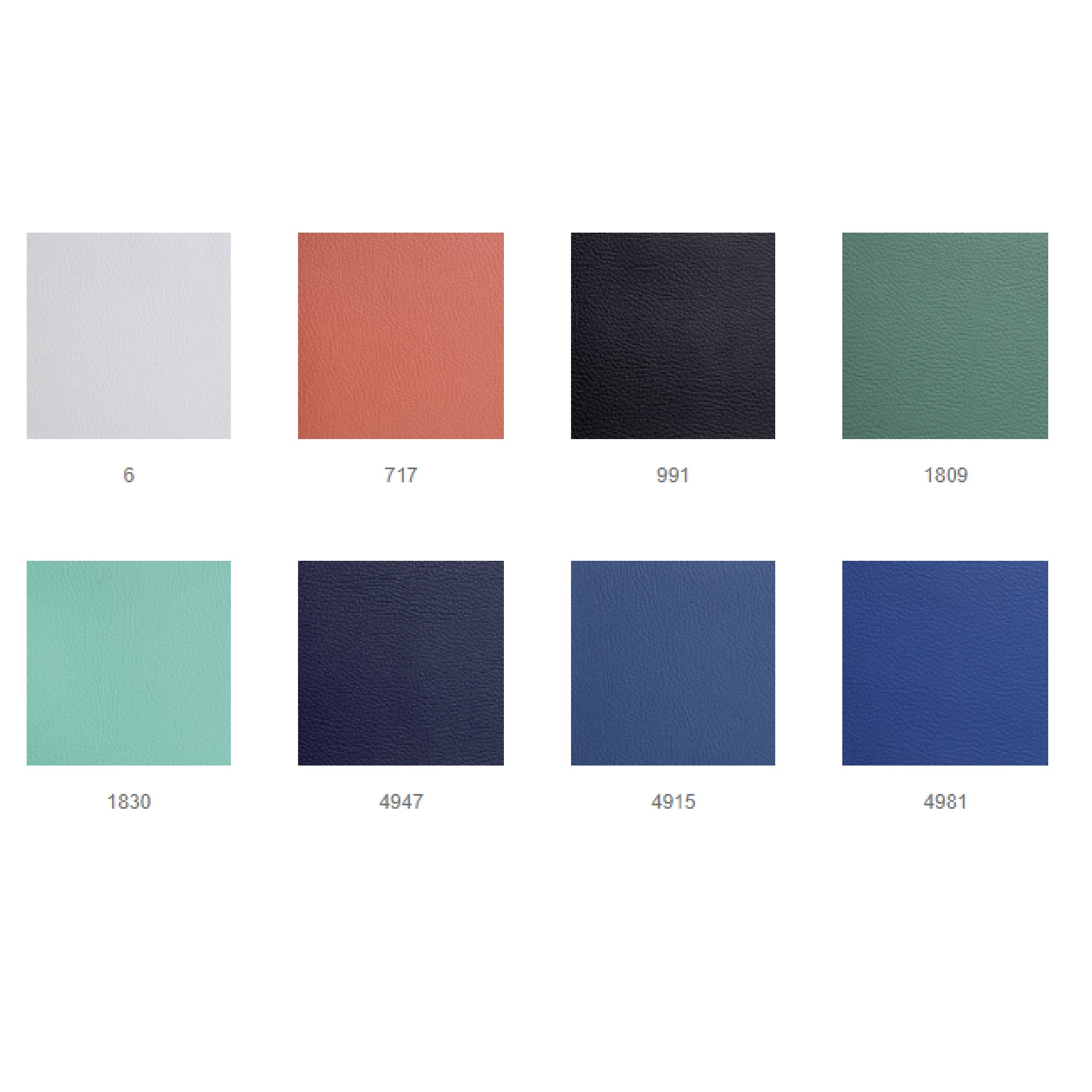 Rivestimento in similpelle lavabile ed autoestinguente classe 1IM, verniciatura con prodotti a base di acqua.