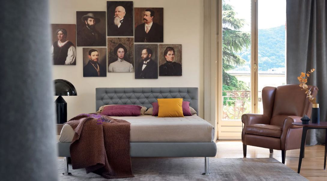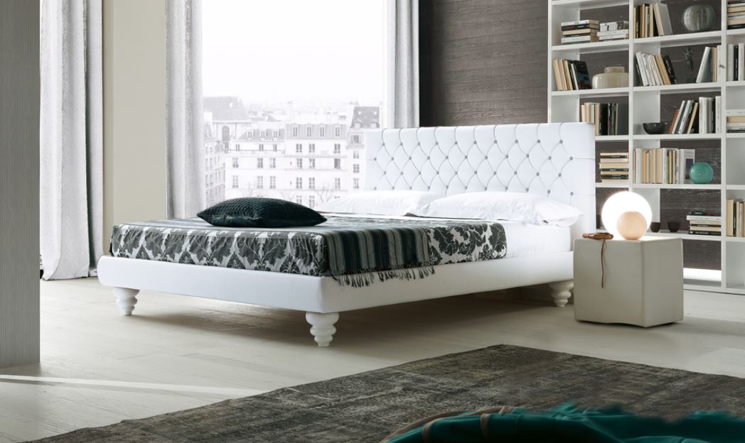 Letto in pelle imbottito dall’inconfondibile lavorazione capitonnè, adattabile a qualsiasi contesto, sia moderno che classico.