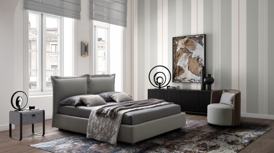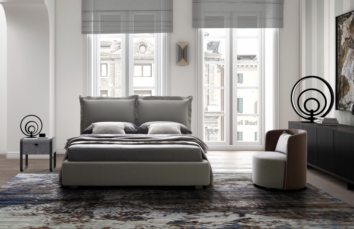 Il letto è disponibile in versione: senza rete, con rete, con rete e contenitore standard, con rete e contenitore comfort (stay), giroletto Fly, come in foto oppure con box scorrevole.