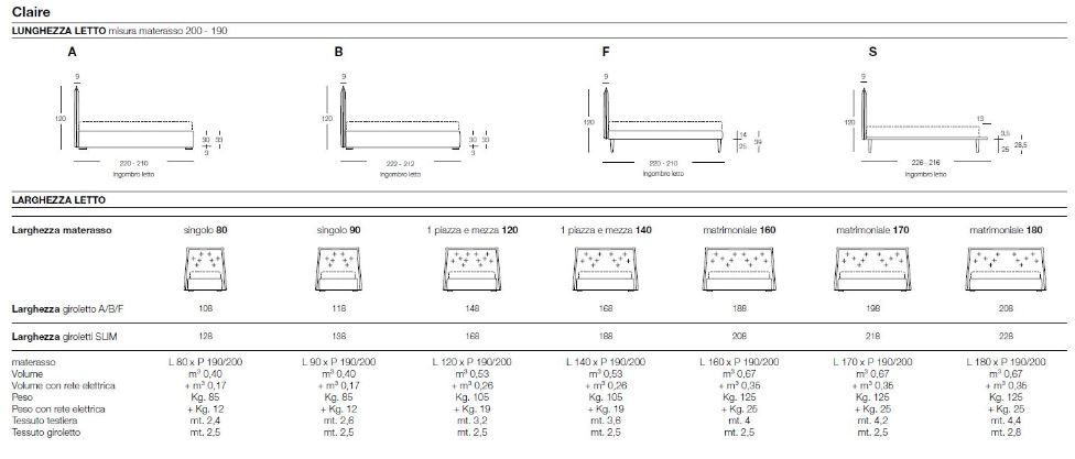 per calcolare la larghezza occupata aggiungere 28 cm alla misura con Giroletto A, B, F.