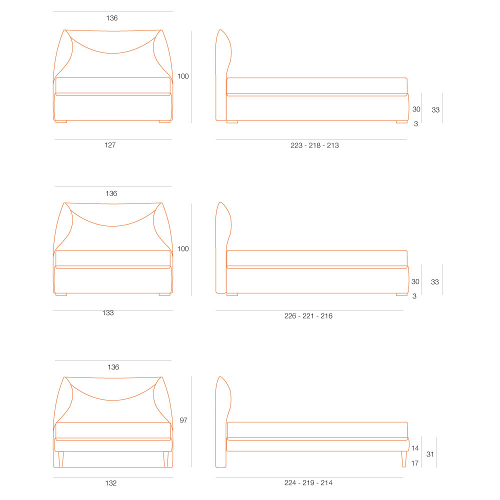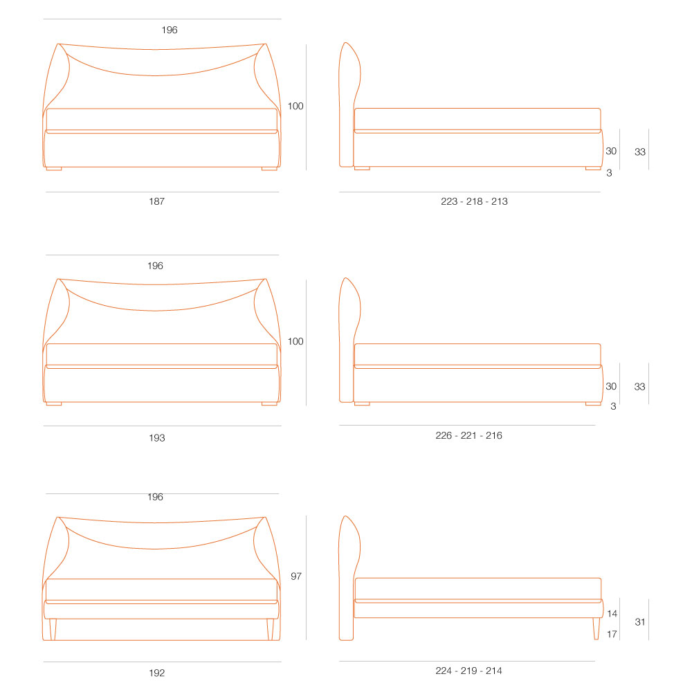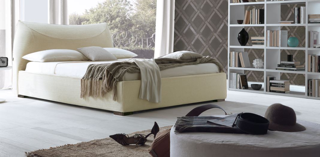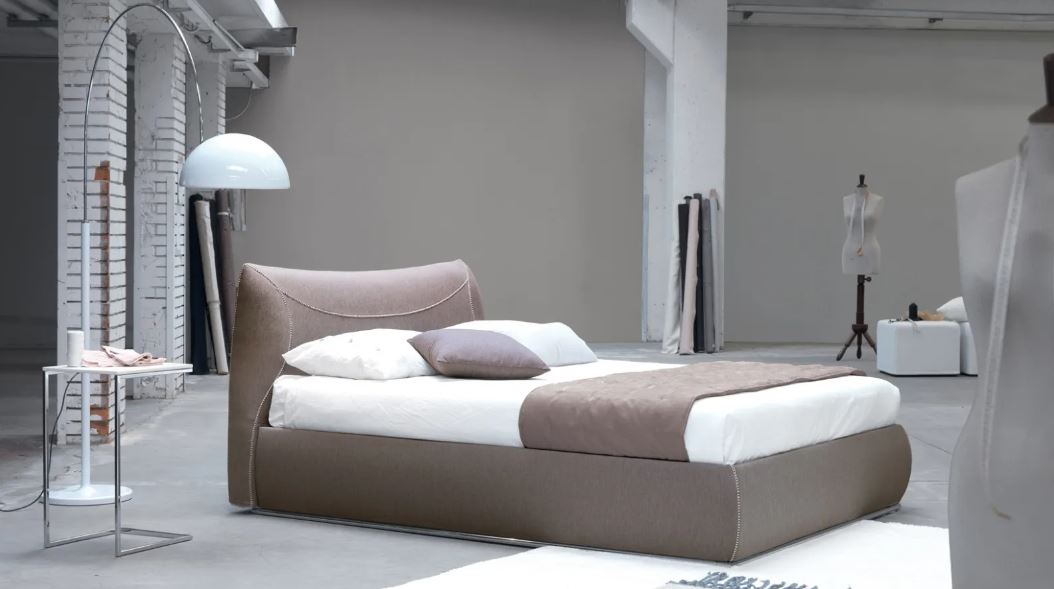 Letto matrimoniale imbottito dall’importante presenza scenica, perfetto per impreziosire la camera grazie all’elegante essenzialità dei tessuti con cucitura a punto cavallo o a bordino, realizzabili su misura.