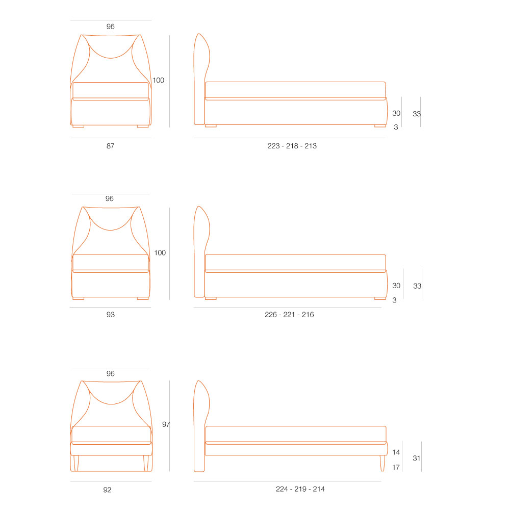 I PIEDI CON ALTEZZA 25 SONO DISPONIBILI SOLO PER LA VERSIONE F ED S, PER QUESTE VERSIONI NON è POSSIBILE SELEZIONARE PIEDI CON ALTEZZE INFERIORI.