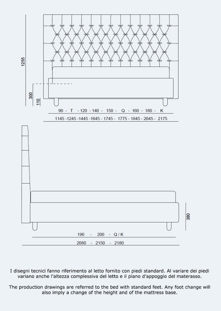 Nella vaersione high la testiera raggiunge i 125 cm .