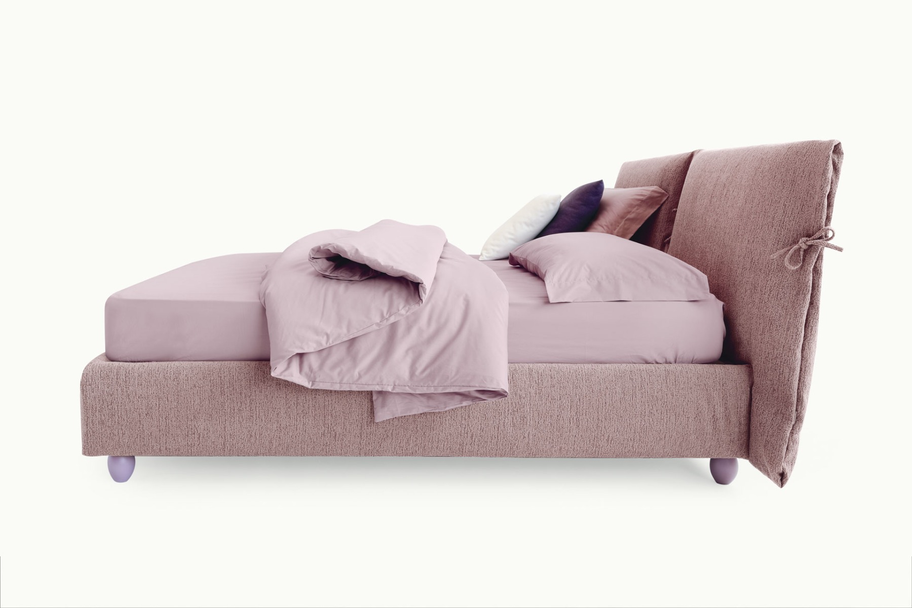 Può essere rifinita con il classico fiocco o con il nuovo alamaro; entrambi possono essere scelti nello stesso tessuto del letto, oppure in cinque diversi colori in vera pelle.