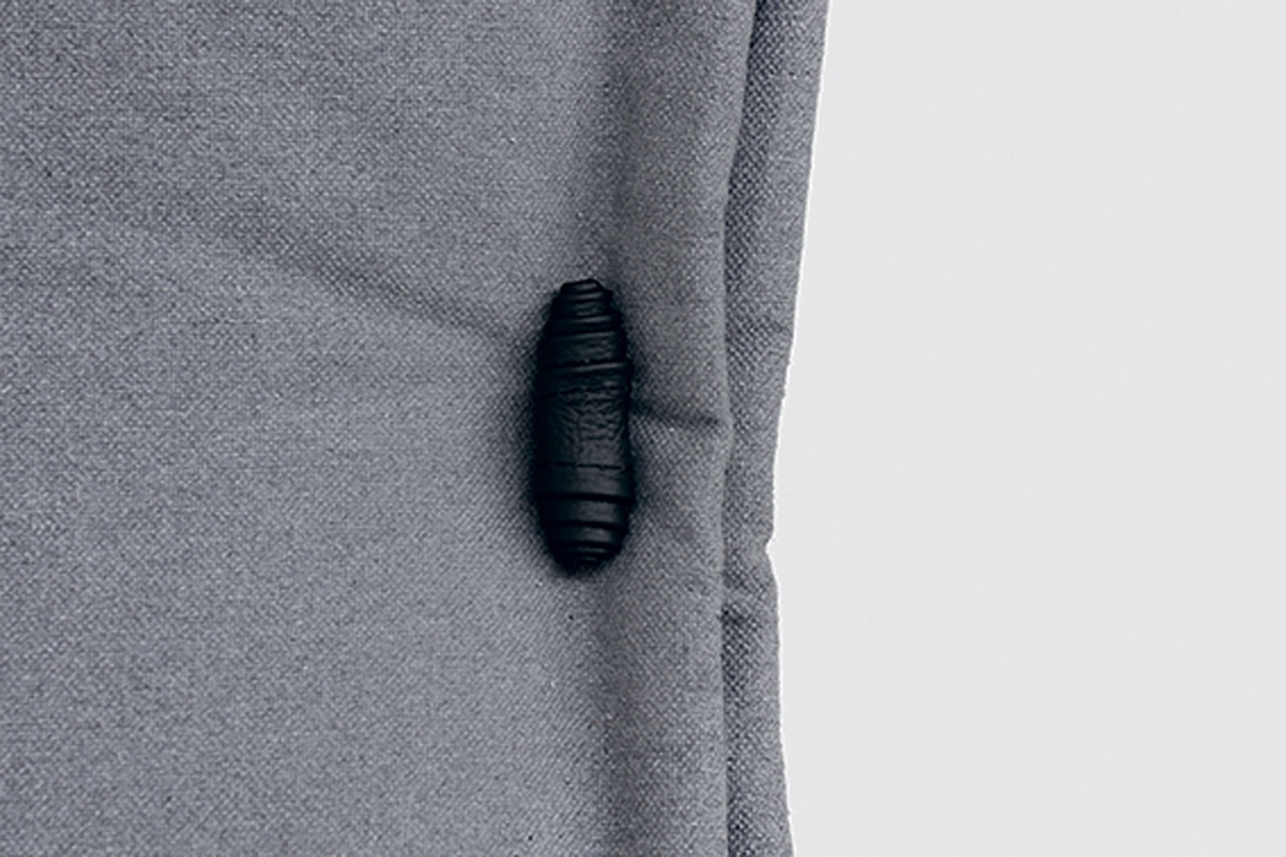 Può essere rifinita con il classico fiocco o con il nuovo alamaro; entrambi possono essere scelti nello stesso tessuto del letto, oppure in cinque diversi colori in vera pelle.